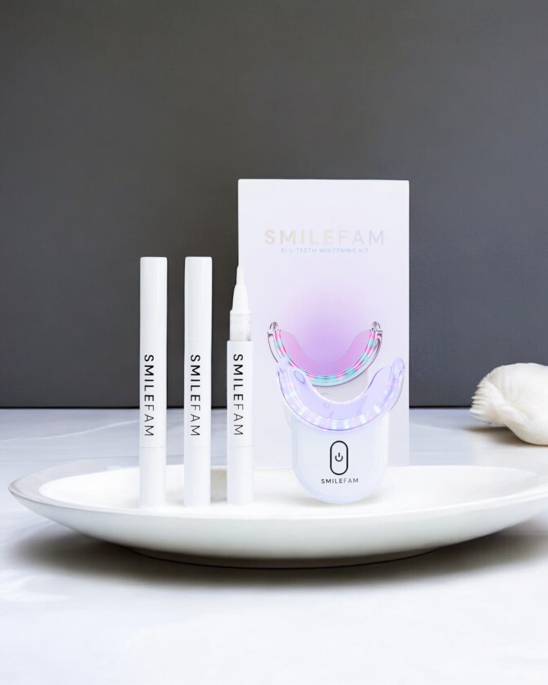"I had low confidence until I came across SmileFam BLU Whitening Kit, where I see significant results in just one session!"